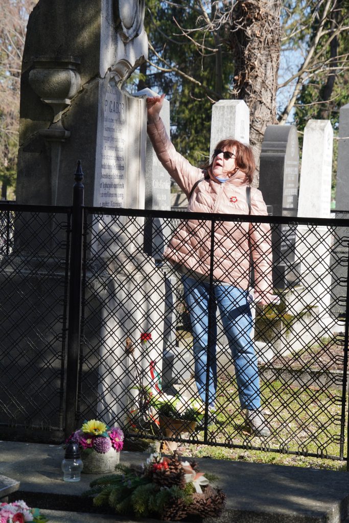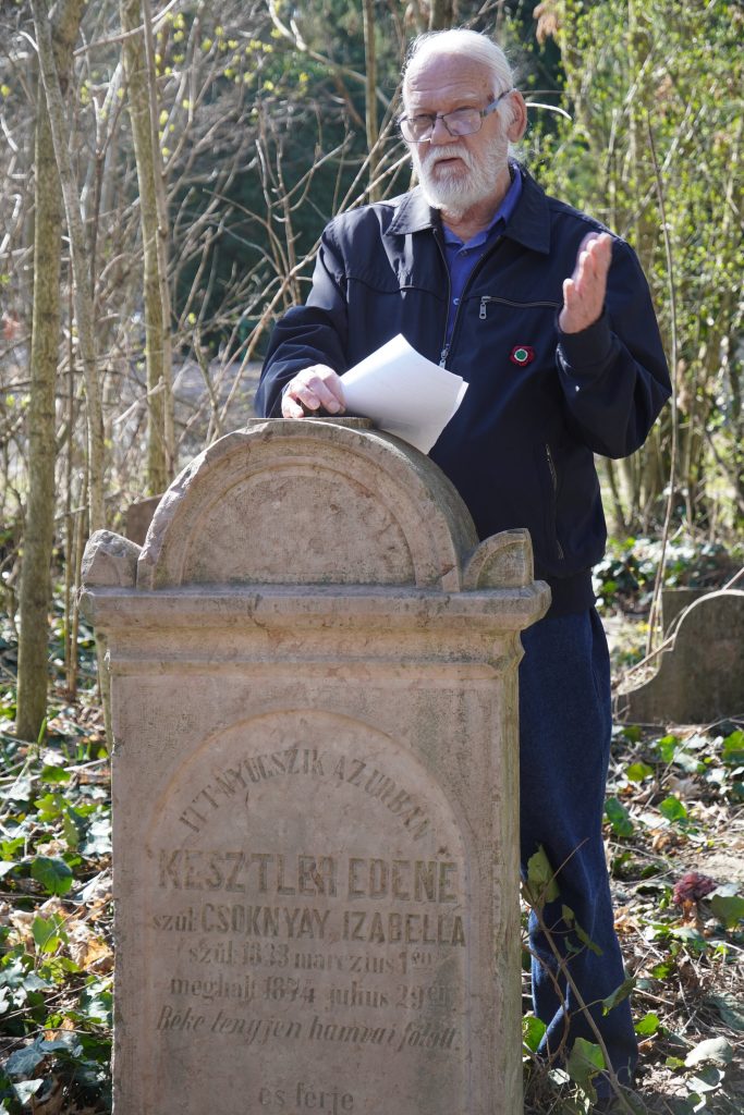 A forradalom ünnepét megelőző napon természetesen ehhez a témához kapcsolódva gyűlt össze a népes társaság a komáromi református temető ravatalozója mellett, hogy részt vegyen a „48-as séta a komáromi sírkertben” című helytörténeti sétán. Külön kiemelném, hogy a sétálók között jelen volt Kiss Róbert kanonok, komáromi esperesplébános, a Nagyszombati Főegyházmegye általános helynöke, Fazekas László emeritus püspök és felesége, Fazekas Zsuzsanna lelkész, valamint Tóth Mihály, nyugalmazott gelléri református lelkész, aki maga is kiselőadásokat tartott egy-egy sírhelynél.